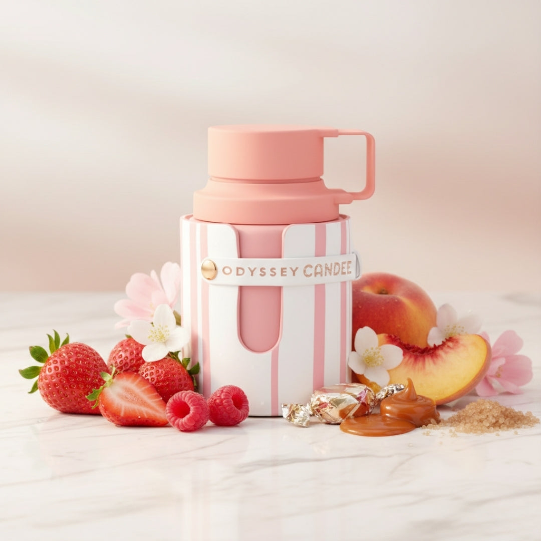 Odyssey Candee 100 ml es un perfume gourmand frutal con una apertura deliciosa de frutas dulces, caramelo y mandarina. En el corazón destacan vainilla, flores suaves y azúcar, creando una vibra dulce irresistible. Su fondo mezcla tonka, ámbar y maderas ligeras, para un acabado cálido y duradero.